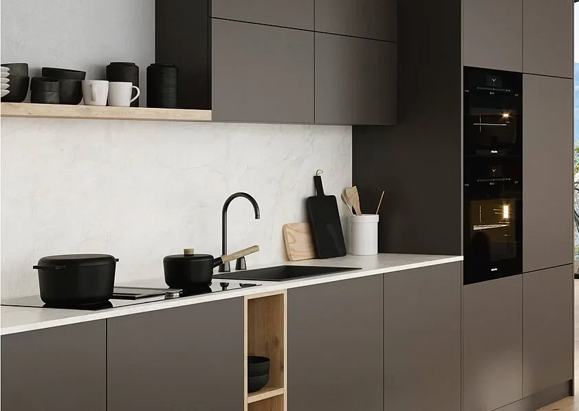 Introducing BE.VELVET, the ultra-soft, matte laminate surface developed by SWISS KRONO. Designed to elevate both form and function. BE.VELVET delivers a luxurious velvety texture while offering high durability and resistance to everyday wear — all with a contemporary, ultra-matte finish that resists fingerprints.